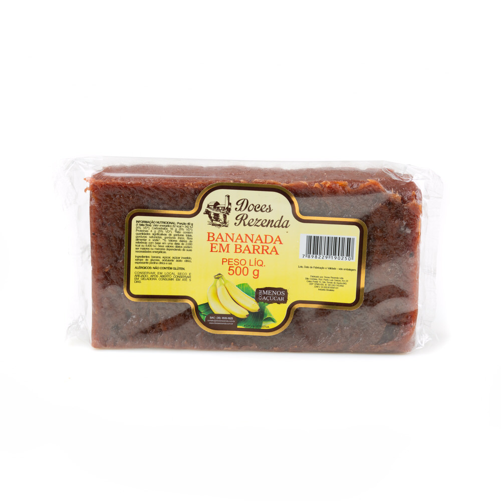 banana, açúcar, açúcar invertido, xarope de glucose, maltodextrina, acidulante ácido cítrico, espessante pectina cítrica e agente de firmeza fosfato tricálcico.